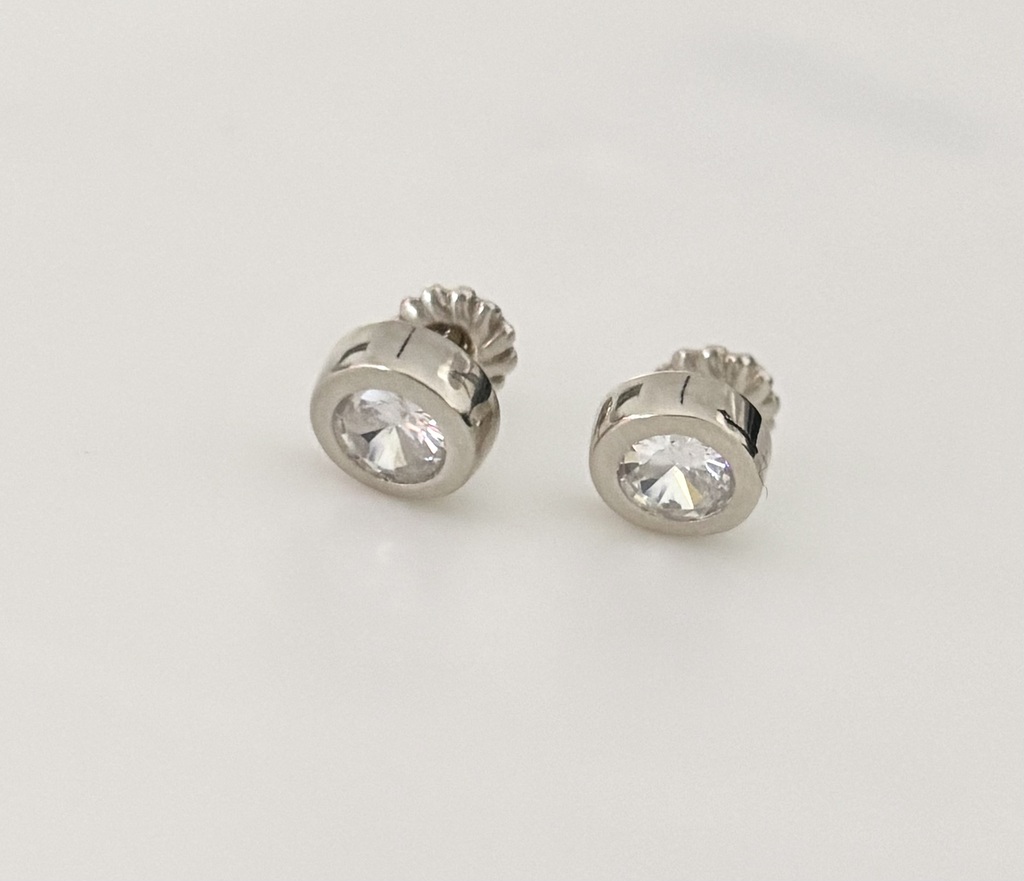Aros en Plata con Cubic, cierre rosca, 7 mm.